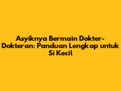 Bermain dokter-dokteran adalah kegiatan yang sangat menyenangkan dan bermanfaat bagi anak-anak. Selain sebagai hiburan, permainan ini juga bisa membantu mereka belajar banyak hal baru, mulai dari mengenal tubuh manusia, mengurangi rasa takut pada dokter, hingga mengembangkan keterampilan sosial. Yuk, kita bahas secara mendalam tentang serunya bermain dokter-dokteran, manfaatnya, serta bagaimana cara membuatnya menjadi pengalaman yang tak terlupakan!