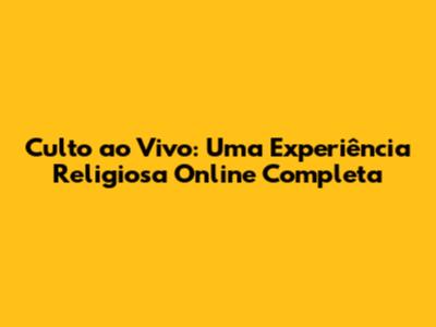 Culto Ao Vivo: Uma Experiência Religiosa Online Completa