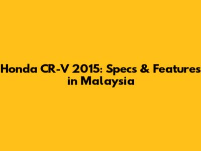 Hey there, car enthusiasts! Let's dive into the Honda CR-V 2015 in Malaysia, a popular compact SUV that has captured the hearts of many. We're going to explore its specifications, features, and why it remains a solid choice. So, buckle up, and let's get started!