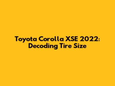 Toyota Corolla XSE 2022: Decoding Tire Size